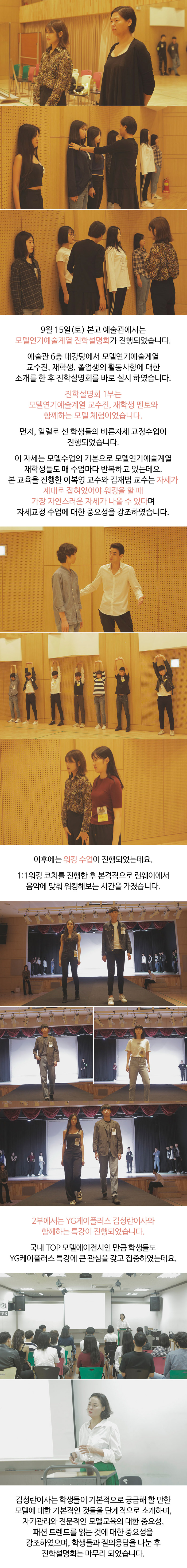 9월 15일(토) 본교 예술관에서는 YG케이플러스와 함께하는 모델연기예술계열 진학체험특강이 진행되었습니다.