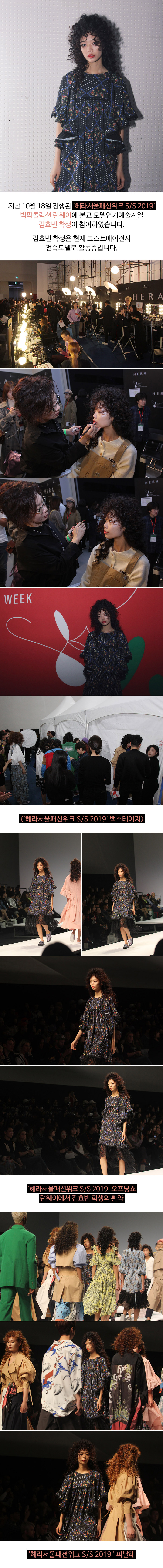 지난 10월 18일 진행된 '헤라서울패션위크 S/S 2019'빅팍콜렉션 런웨이에 본교 모델연기예술계열 김효빈학생이 참여하였습니다.