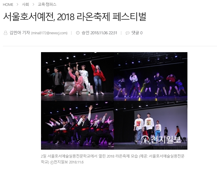 서울호서예술실용전문학교 2018 라온축제가 지난 2일 개최됐다.