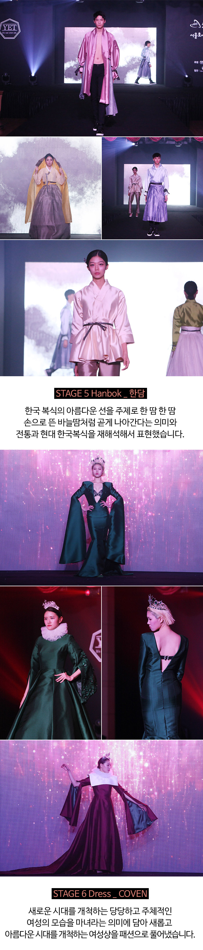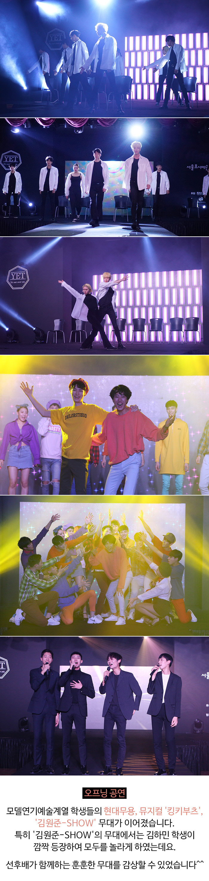 본 행사는 현대무용, 뮤지컬 등의 오프닝 공연으로 시작되었으며, 5가지 컨셉으로 구성된 패션쇼에 모델연기예술계열 재학생들이 모델로서 런웨이에 섰습니다.