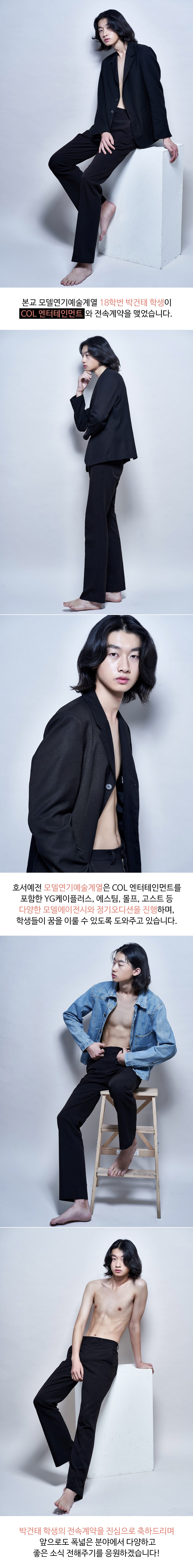본교 모델연기예술계열 18학번 박건태 학생이 COL 엔터테인먼트 와 전속계약을 맺었습니다.