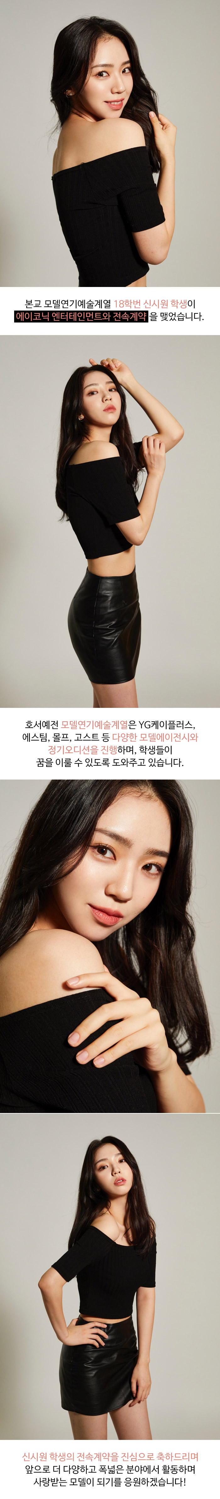 호서예전 모델연기예술계열은 YG케이플러스, 에스팀, COL, 몰프, 고스트 등 다양한 모델에이전시와 정기오디션을 진행하며, 학생들이 꿈을 이룰 수 있도록 도와주고 있습니다.