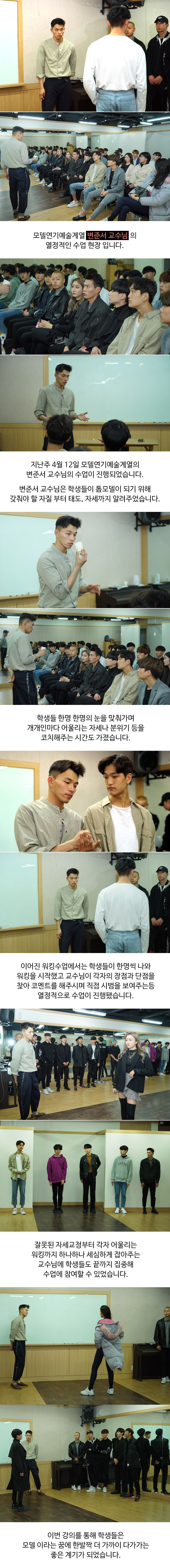 변준서 교수님은 학생들이 톱모델이 되기 위해 갖춰야 할 자질부터 태도, 자세까지 알려주었습니다.