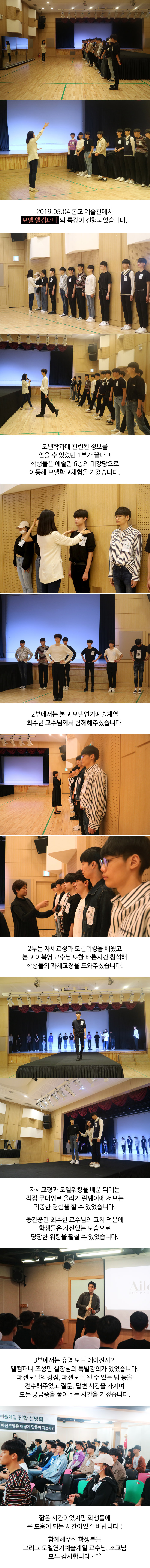 2019.05.04 본교 예술관에서 모델앨컴퍼니의 특강이 진행되었습니다.