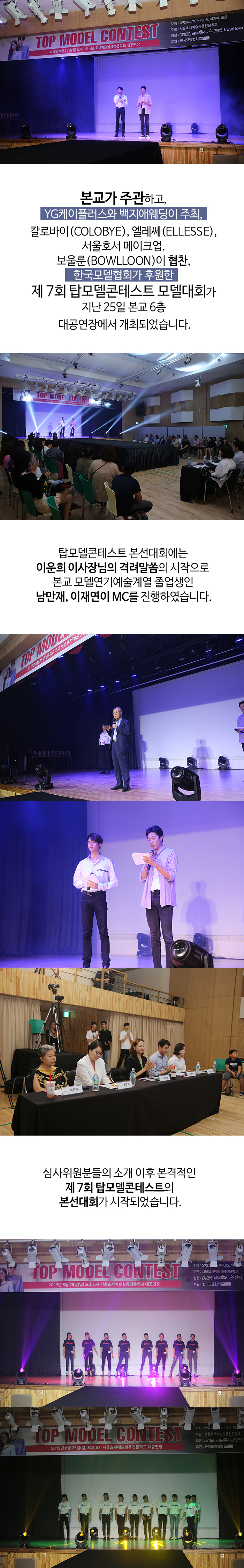 2019년 8월 25일 제7회 탑모델콘테스트 모델대회가 본교 대공연장에서 아래와 같이 개최되었습니다.