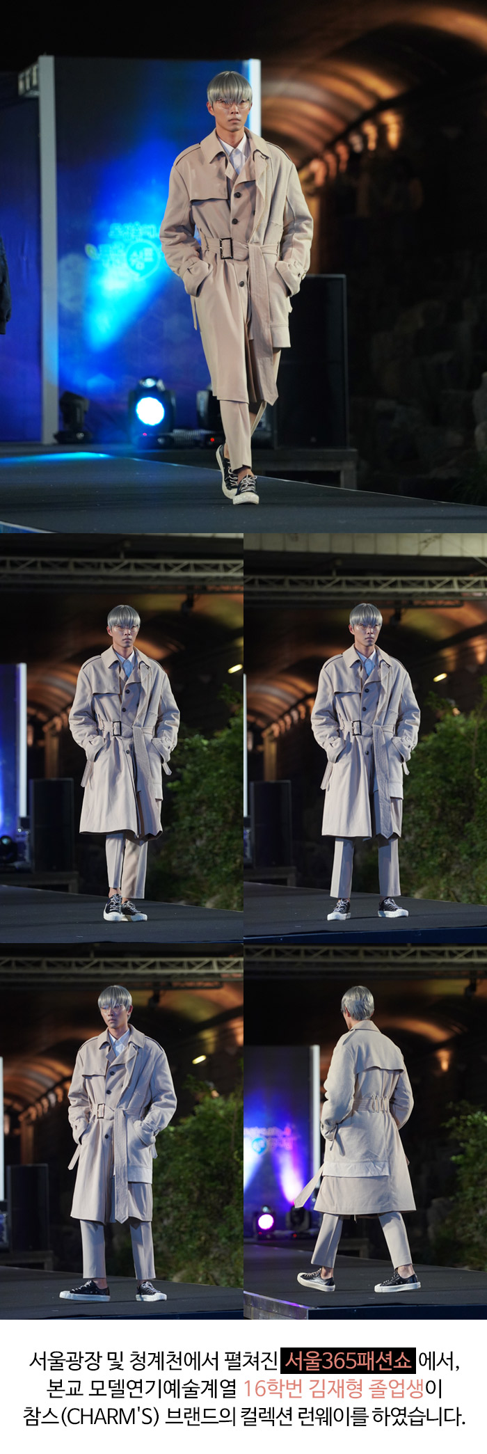 서울광장 및 청계천에서 펼쳐진 서울365패션쇼에서, 본교 모델연기예술계열 16학번 김재형 졸업생이 참스(CHARM'S) 브랜드의 컬렉션 런웨이를 하였습니다.