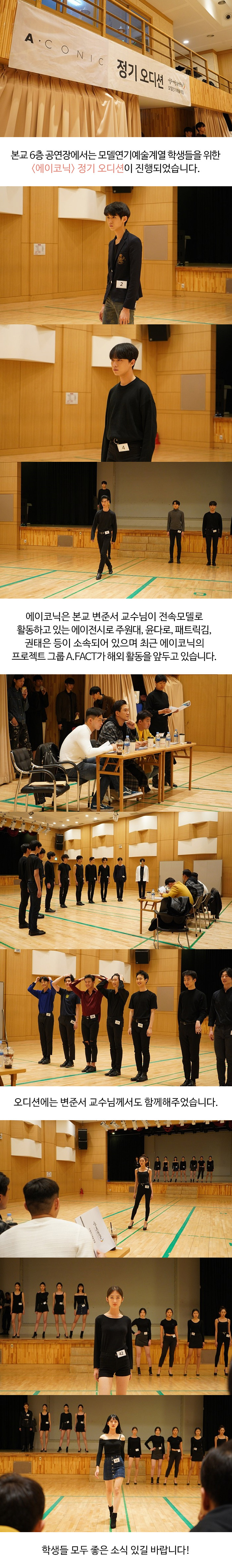 본교 6층 대공연장에서는 모델연기예술계열 '에이코닉' 모델에이전시 정기 오디션이 진행되었습니다.