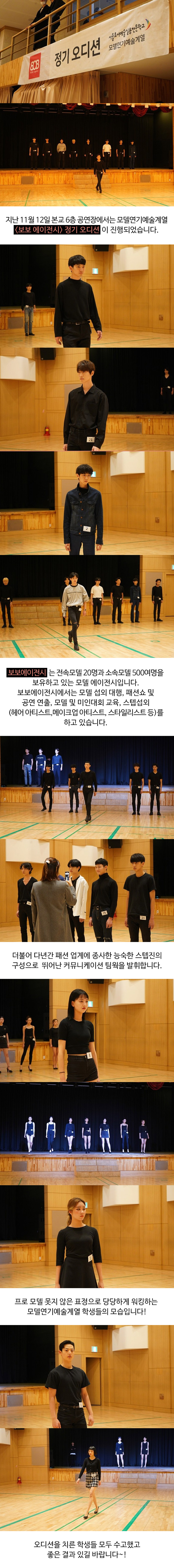 지난 11월 12일 본교 예술관에서는 모델연기예술계열 보보 모델에이전시 정기 오디션이 진행되었습니다.