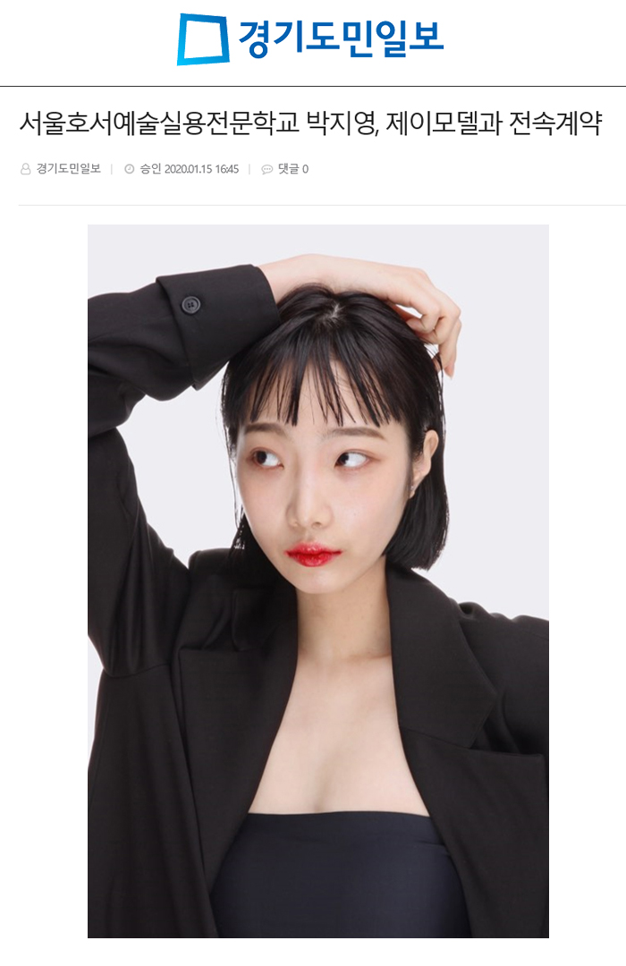 서울호서예술실용전문학교(이하 서울호서예전) 모델연기예술계열 18학번 박지영 학생이 해외모델, 국내모델의 모델매니지먼트 제이모델(jmodel)과 전속계약을 맺었다.