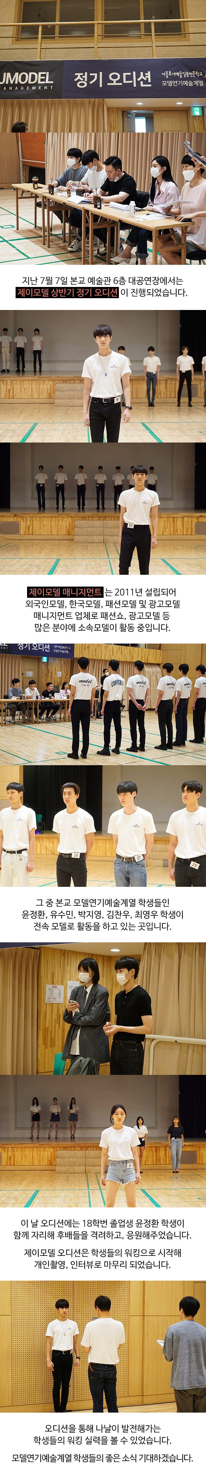 지난 7월 7일 본교 예술관 6층 대공연장에서 모델연기예술계열의 상반기 정기오디션 '제이모델' 오디션이 진행되었습니다.