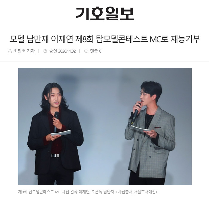 MC 남만재와 이재연은 탑모델콘테스트의 주관사인 서울호서예전의 졸업생으로 작년에 이어 탑모델콘테스트에 재능 기부로 진행을 맡아 모교의 후배 양성을 돕고 있다.