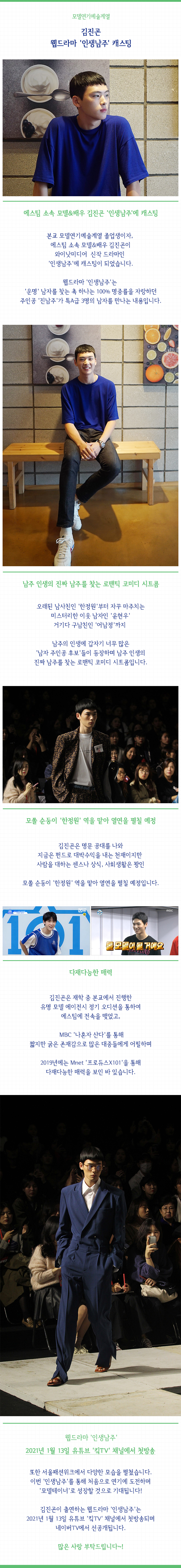 모델연기예술계열 김진곤, 웹드라마 '인생남주' 캐스팅