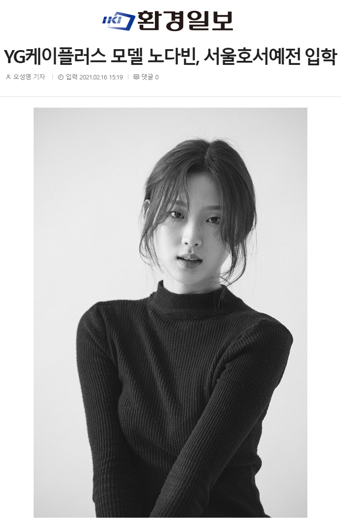 [언론보도]YG케이플러스 모델 노다빈, 서울호서예전 입학