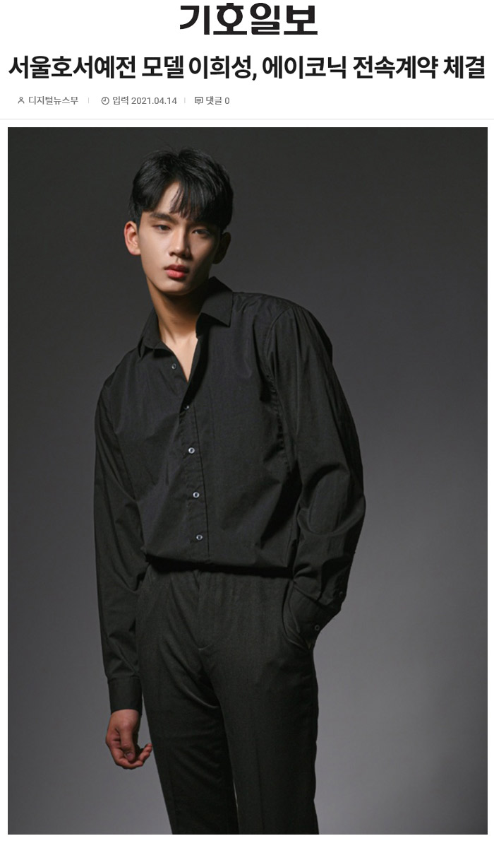 서울호서예술실용전문학교(이하 서울호서예전) 모델연기예술계열 모델과정 21학번 이희성 학생이 주원대, 윤다로, 권태은, 변준서 등 약 65명의 핫한 모델테이너가 소속된 에이코닉(Aconic) 모델매니지먼트와 전속계약을 맺었다.