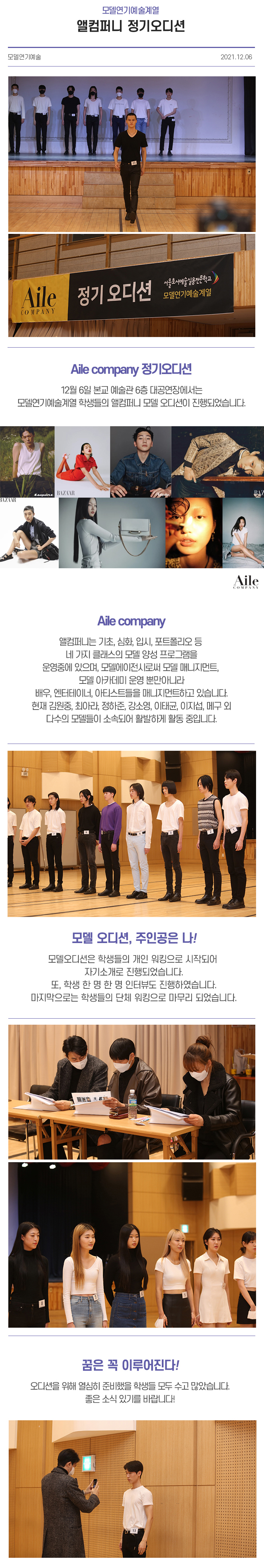 지난 12월 6일 본교 예술관 6층 대공연장에서는 서울호서예술실용전문학교 모델연기예술계열 학생들의 엘컴퍼니 모델 오디션이 진행되었습니다.