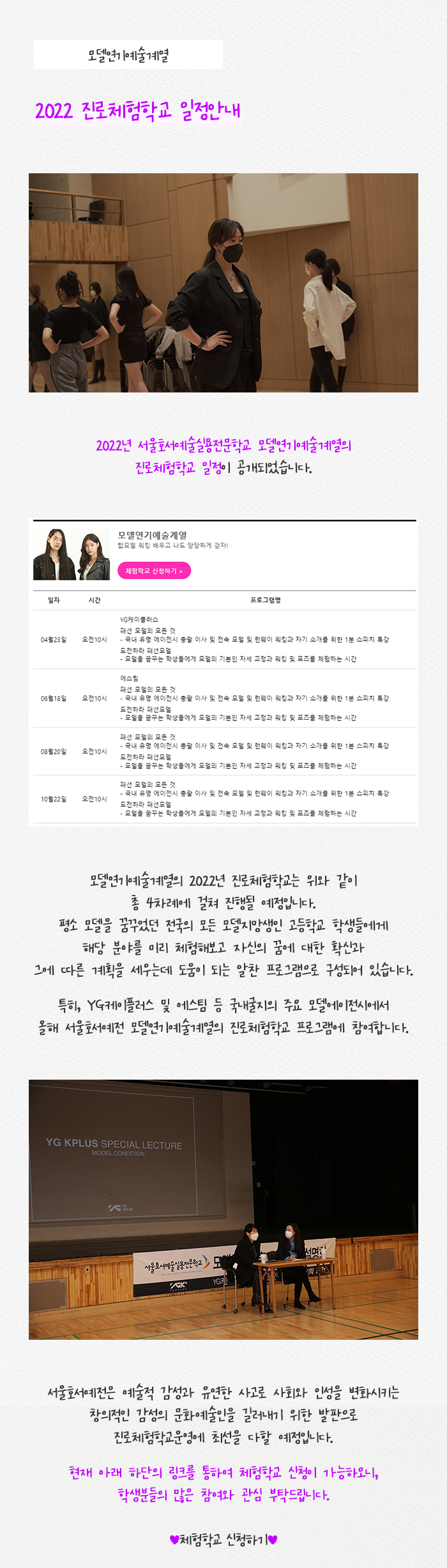 모델연기예술계열 2022 진로체험학교 일정 안내