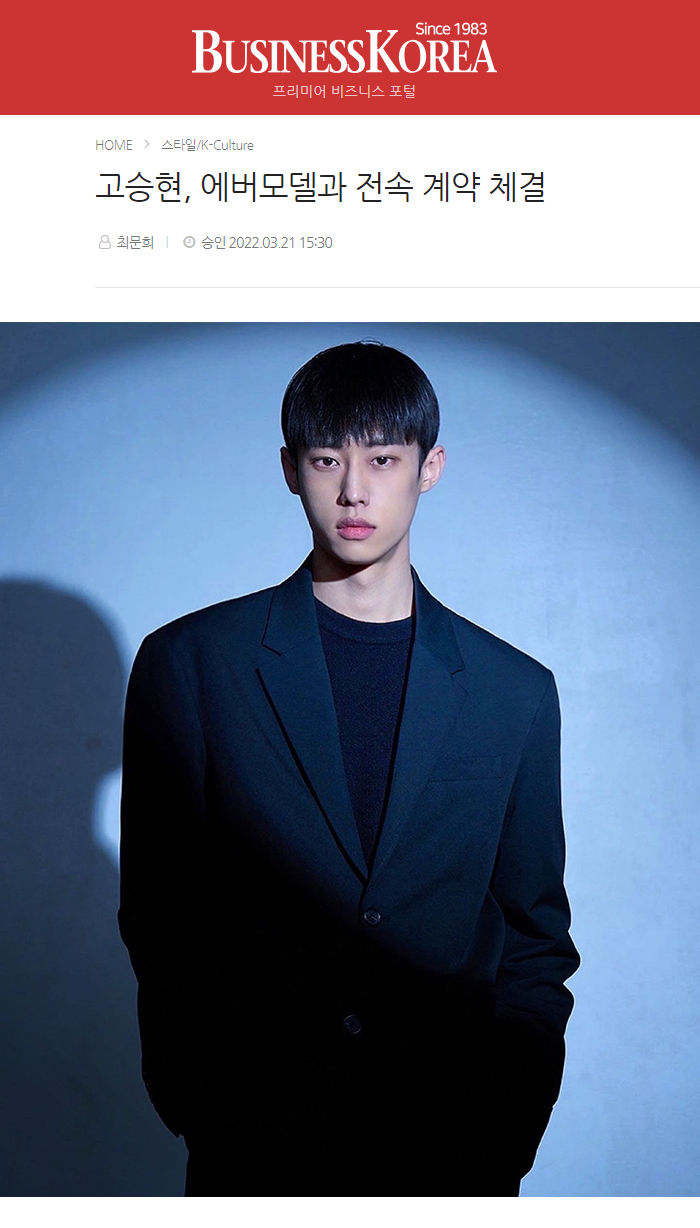 [언론보도] 고승현, 에버모델과 전속 계약 체결