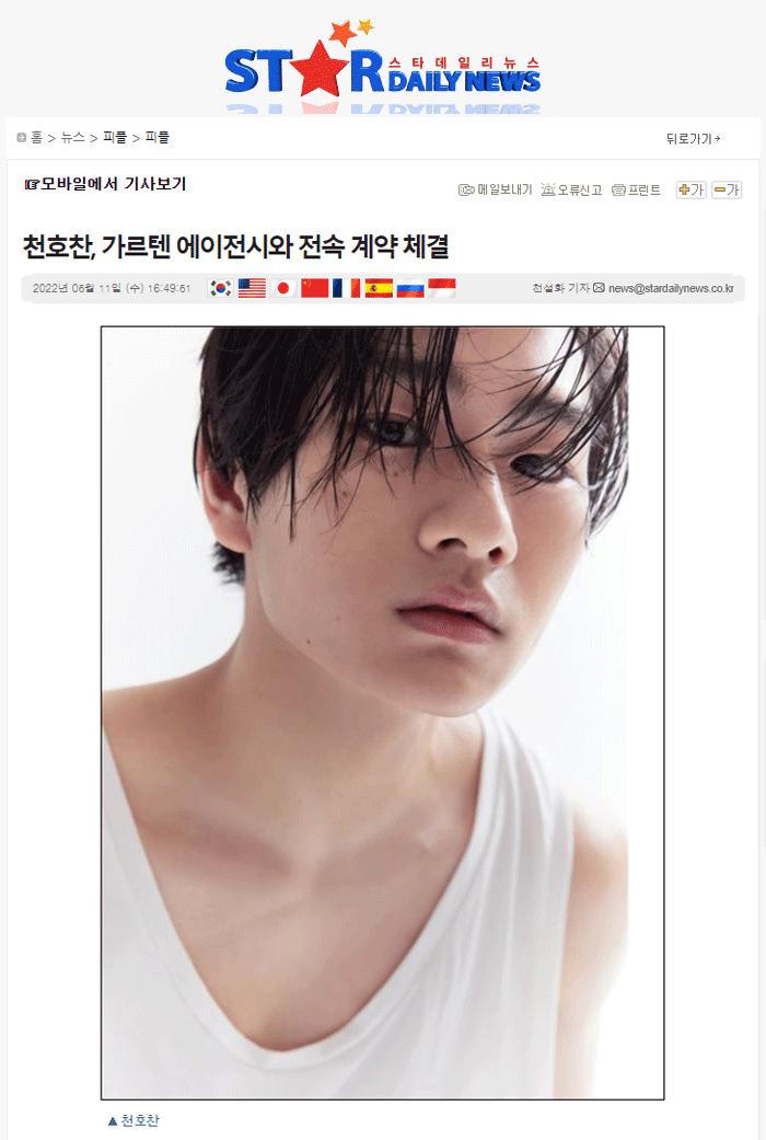 [언론보도] 천호찬, 가르텐 에이전시와 전속 계약 체결