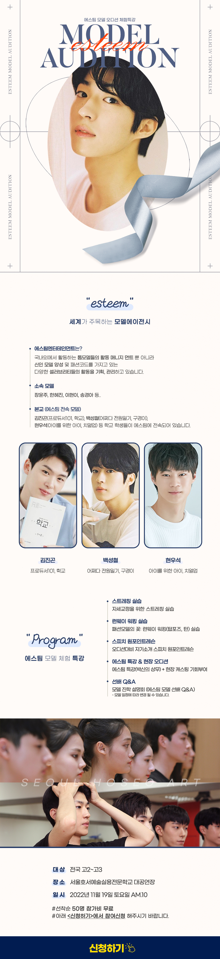 서울호서예술실용전문학교 모델연기예술계열 에스팀 모델 오디션 체험특강 신청하기