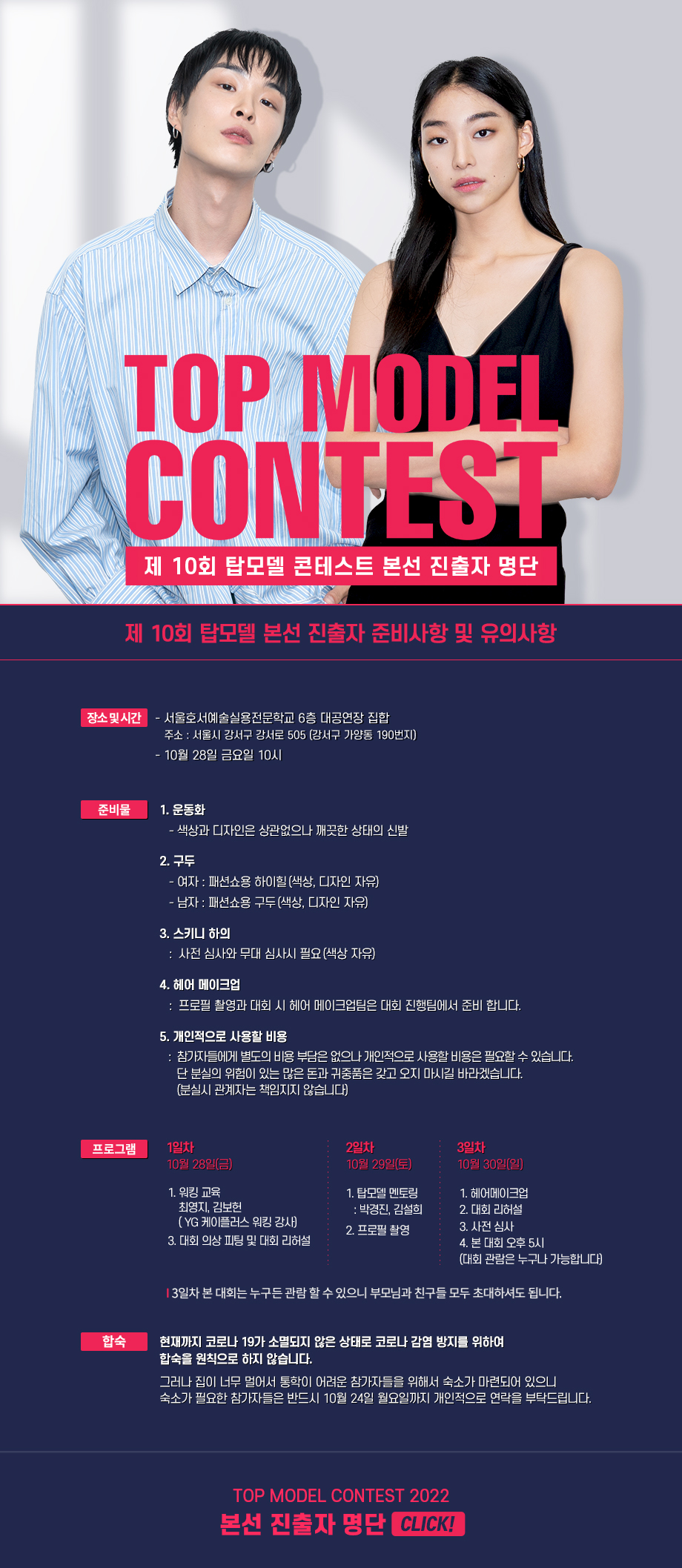 제 10회 탑모델콘테스트 본선 진출자 명단 및 안내