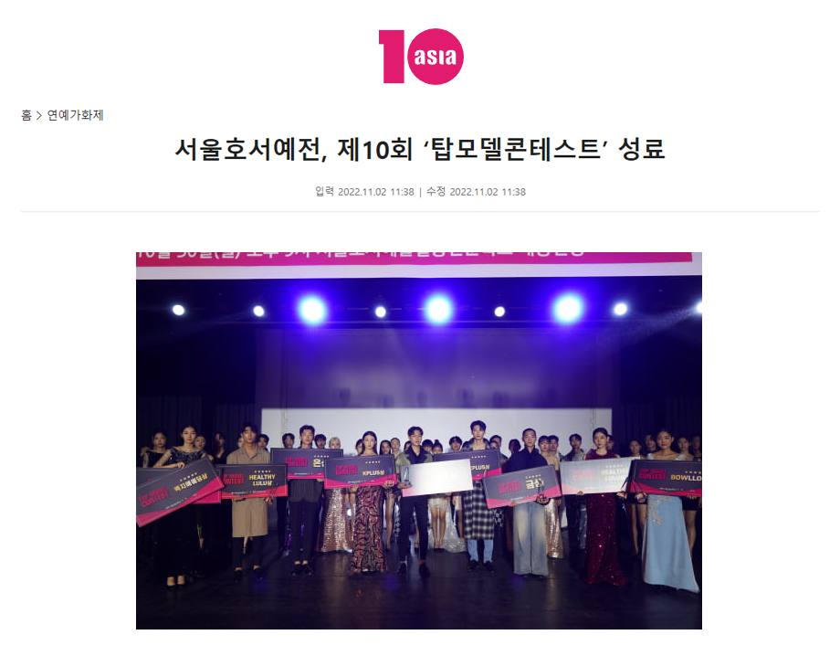 탑모델콘테스트는 매년 새로운 모델을 발굴하기 위해 진행되는 모델 대회로 올해 10회를 맞아 케이플러스와 서울호서예전이 주최·주관하고 헬씨룰루, 제이홀릭, 서울호서가 협찬하며 백지애웨딩, 보울룬, 이륙이 후원했다.