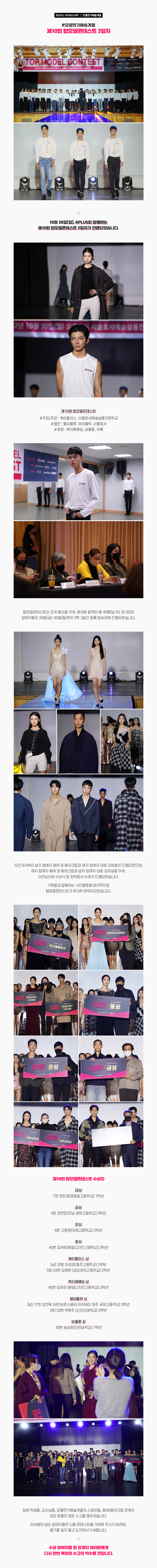 10월 30일(일), KPLUS와 함께하는 제10회 탑모델콘테스트 3일차가 진행되었습니다. 제10회 탑모델콘테스트 주최/주관 : 케이플러스, 서울호서예술실용전문학교 / 협찬 : 헬씨룰루, 제이홀릭, 서울호서 / 후원 : 백지애웨딩, 보울룬, 이륙 탑모델콘테스트는 매년 본교와 함께 진행하고 있으며, 탑모델콘테스트 스타로는 1회 남주혁, 2회 신용국, 3회 손기성, 4회 장태희, 5회 김어진 등 많은 모델들의 스타 등용문으로 자리 잡고 있습니다. 또 KPLUS에는 배정남, 박형섭, 권현빈 등이 전속되어 있는 모델 에이전시입니다.