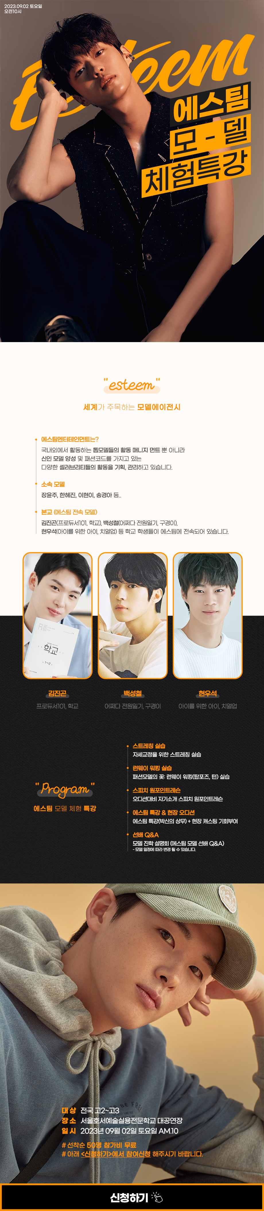 서울호서예술실용전문학교 모델연기예술계열 모델과입시생들을 위한 2023 에스팀 모델체험특강 신청하기