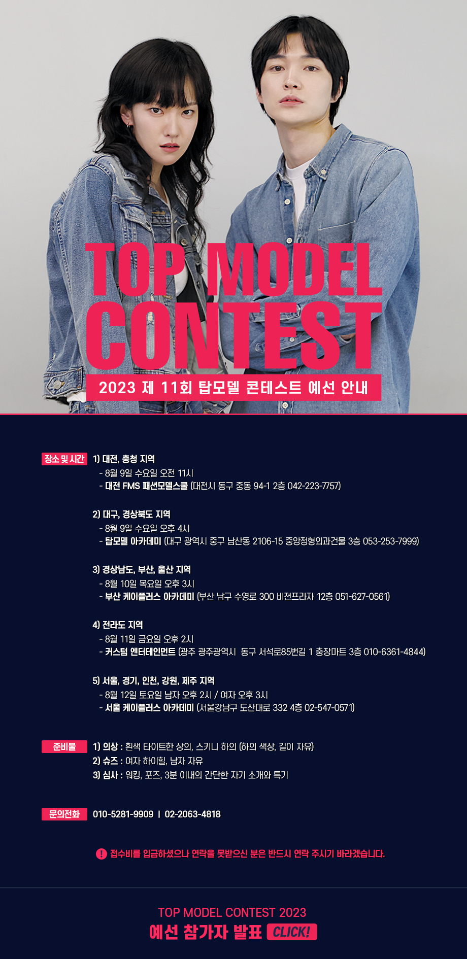 서울호서예술실용전문학교 제 11회 탑모델콘테스트 1차 예선 참가자 명단을 발표합니다.