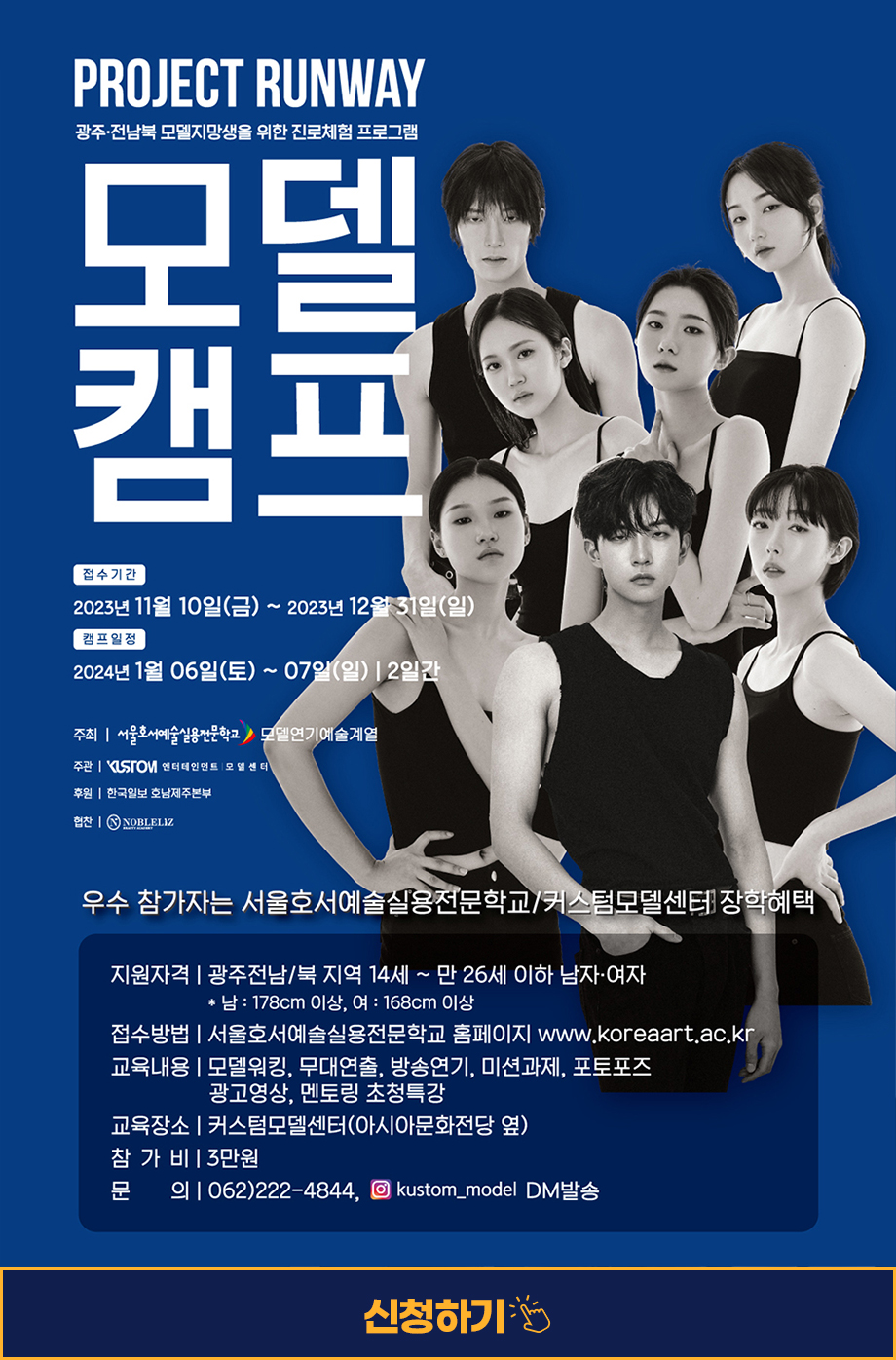 서울호서예술실용전문학교 모델연기예술계열 광주·전남북 모델지망생을 위한 진로체험 프로그램 2024 커스텀 모델캠프 신청하기