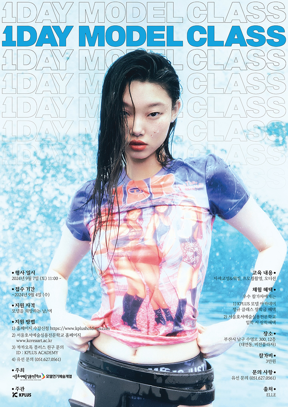 KPLUS가 주관하고 서울호서예술실용전문학교 모델연기예술계열이 주최하는 원데이 모델 클래스가 개최됩니다.