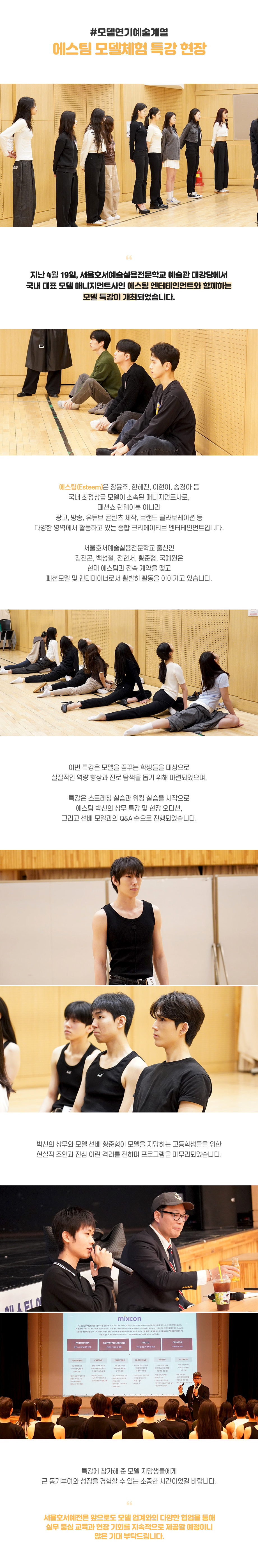 모델연기예술계열 에스팀 모델체험 특강 현장