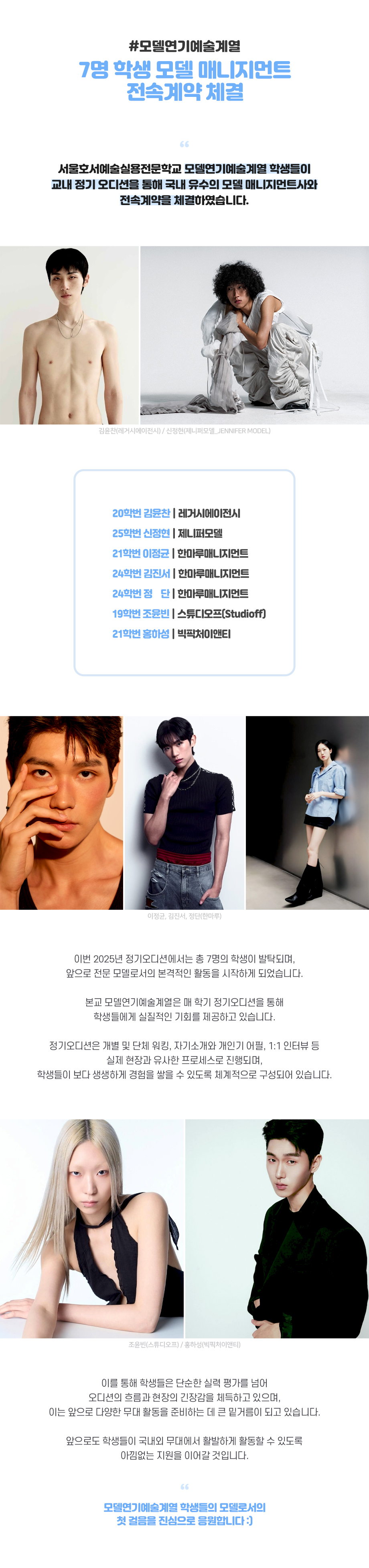 모델연기예술계열 7명 학생 모델 매니지먼트 전속계약 체결