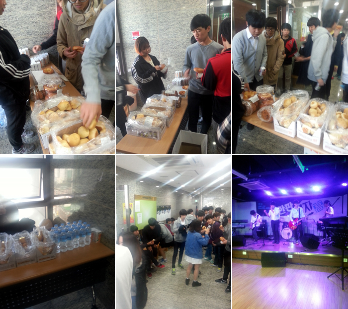 이른 시간부터 최종경연대회에 참가한 학생들이 배고프지 않도록 다른 팀이 리허설 하는 동안 맛있는 빵과 음료수를 제공해주었습니다~ 우와~ 사진으로 다시보니 맛있었겠네요!!