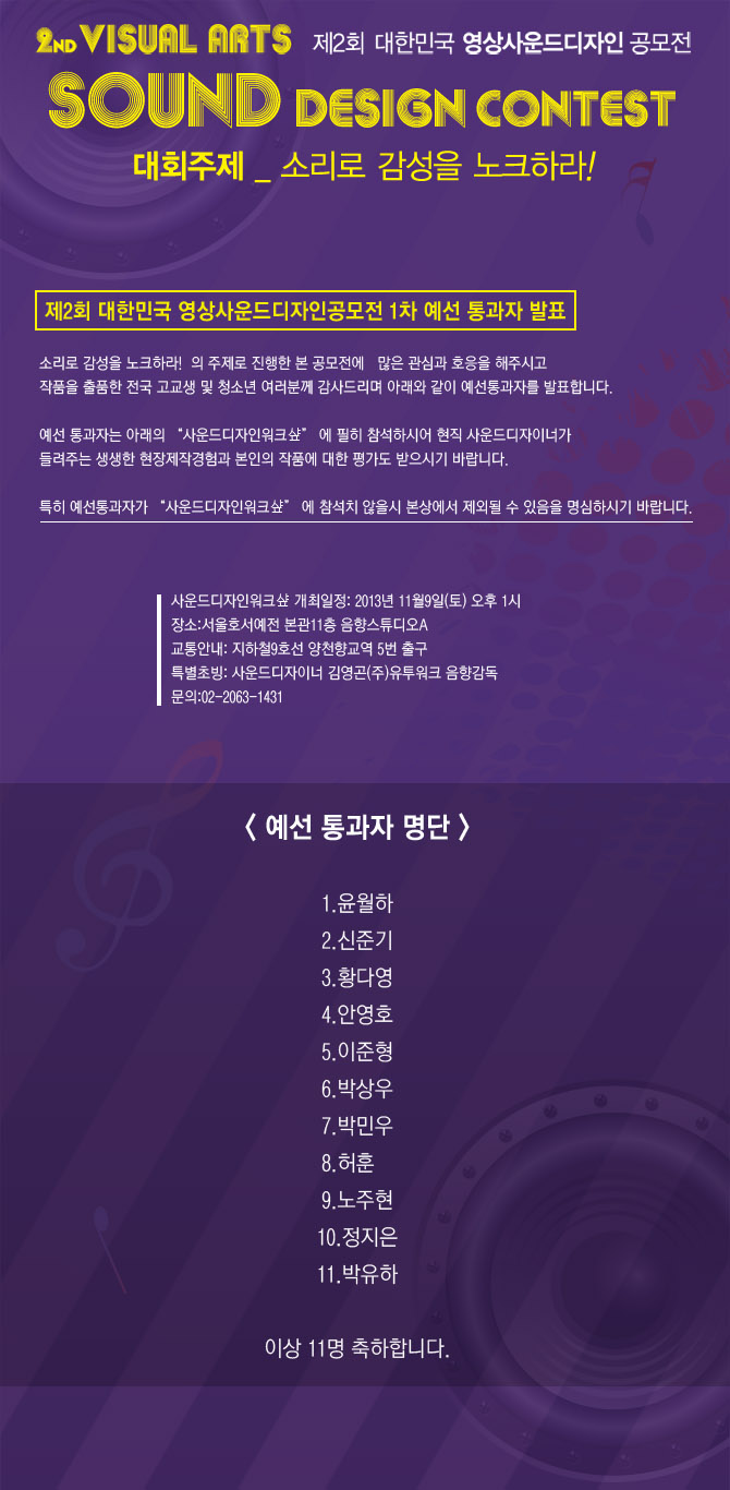 [발표]제2회 대한민국 영상사운드디자인공모전 1차 예선 통과자 발표