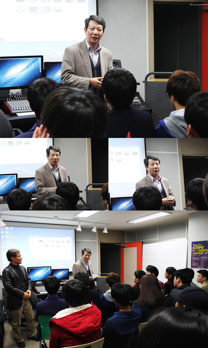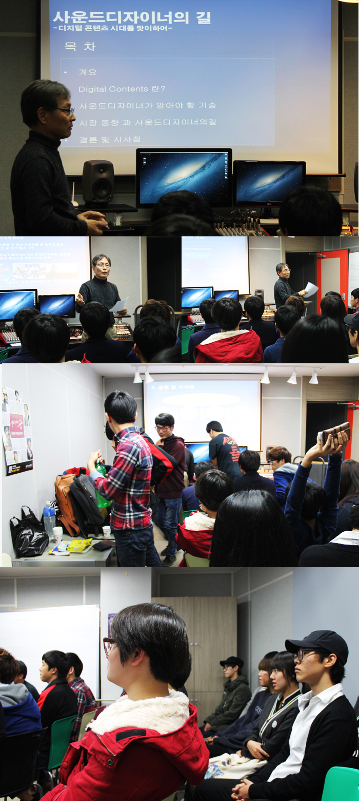 사운드디자인이라는 분야의 개념과 앞으로의 방향 등을 제시하는 특강이었습니다.