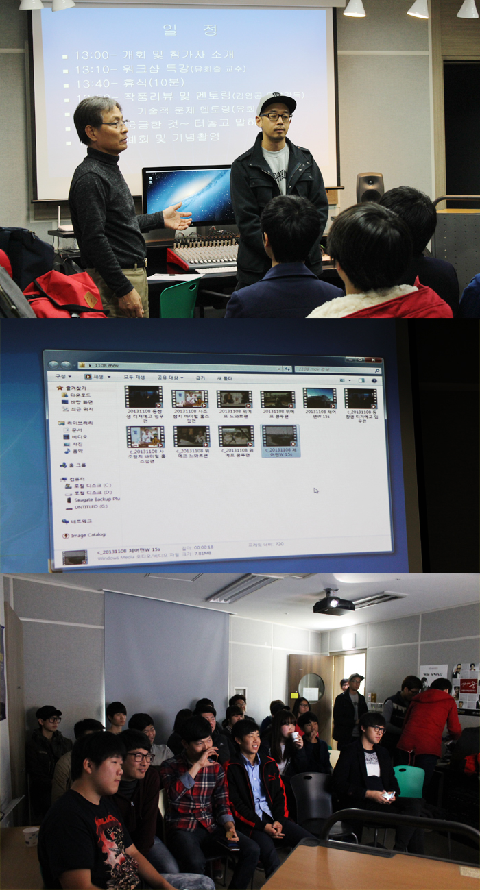 음향미디어 유회종 교수님의 특강을 듣고, 현직 사운드디자이너에게 예선 통과작에 대한 리뷰를 들어보는 시간을 가졌습니다~
