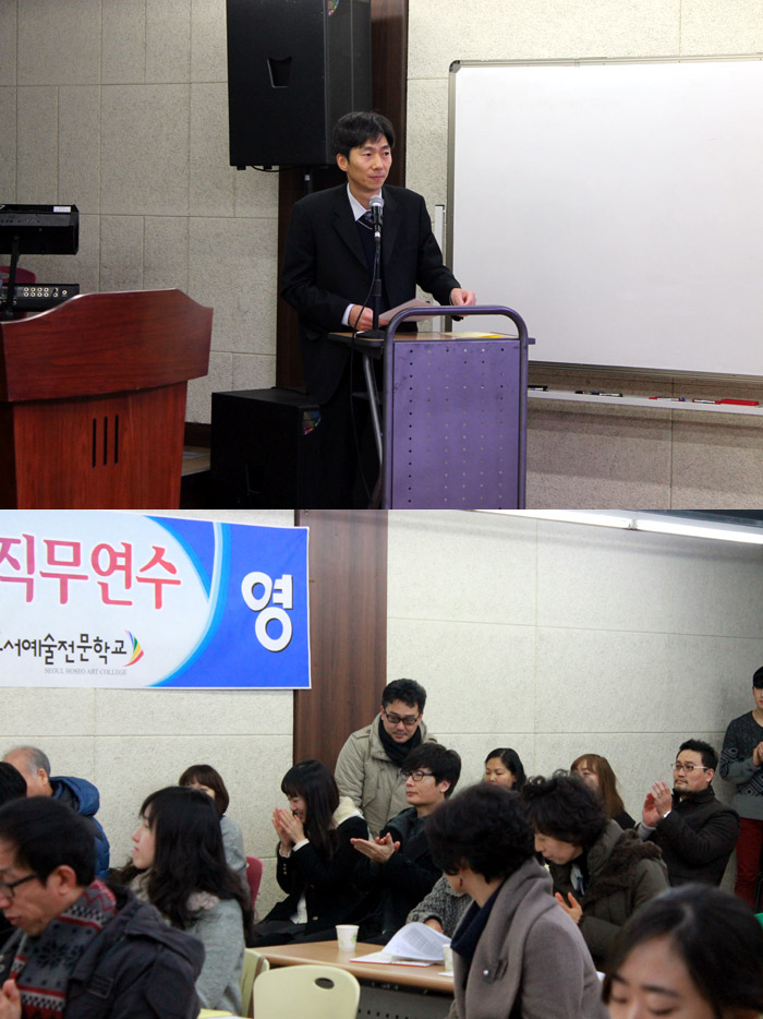 학사관리팀 이원철 팀장님의 사회로 진행된 본교 특수분야 직무연수에는 국민의례와 각 계열별 교수님들의 소개가 있었어요. 이번 특수분야 직무연수를 교육해주시는 교수님들은 물론, 재학생들의 교육을 책임져주시는 교수님들이 모두 한자리에 모여주셨습니다.