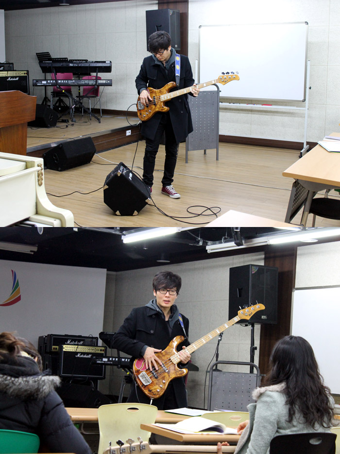 서재혁 교수님도 베이스 셋팅완료하셨네요~ 선생님들도 하나씩 받으신 베이스를 품에 앉고 하나씩 줄을 튕겨보며 베이스와 친해지기 시작하셨어요~
