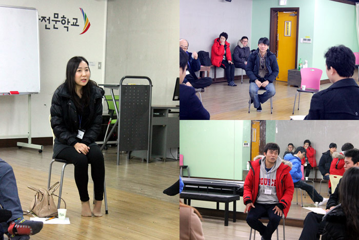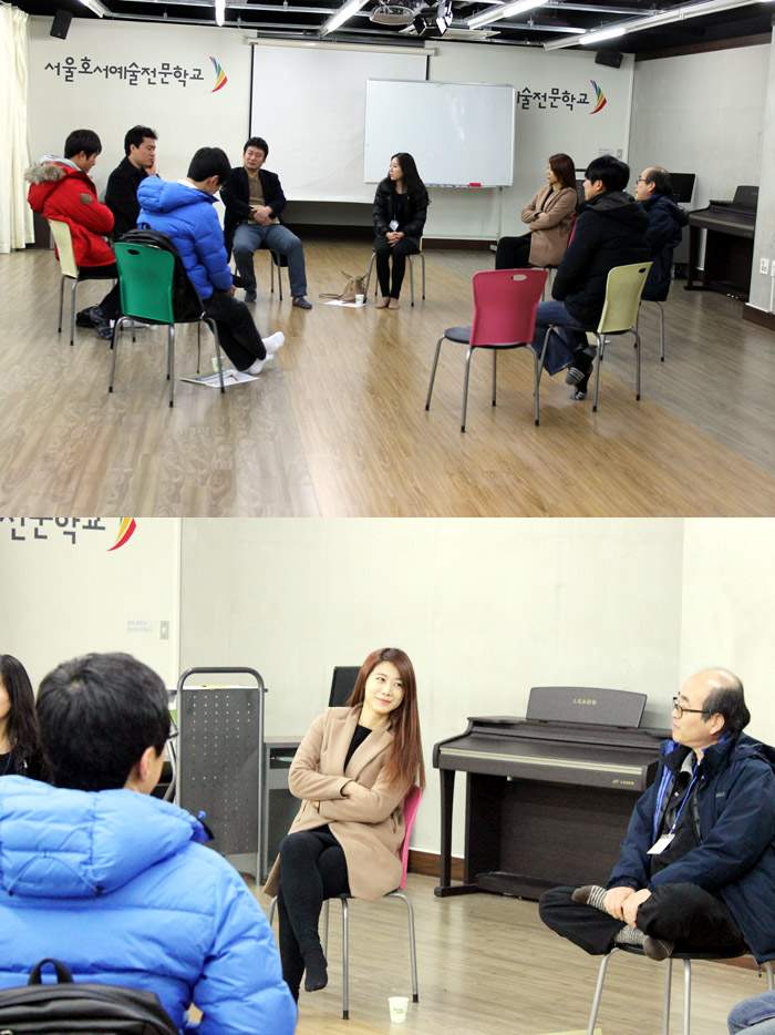 그리고 우리 본교에 대한 소개도 간단하게 해주셨는데요. 아직 생긴 지 얼마안 된 신생학교수준의 본교이지만 이미 졸업 후 방송계에 데뷔하거나 자신의 전공분야에 진출한 학생들이 많다는 것을 소개해주셨습니다~ ^^