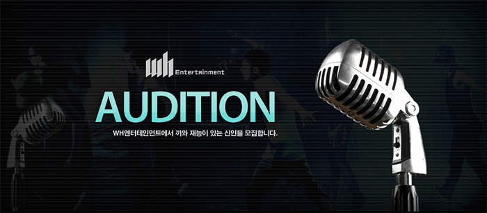 WH엔터테인먼트는 가수장우혁이 소속되어 있는 기획사로, 여러곳에서 오디션이 진행이 되고 있는 곳입니다.