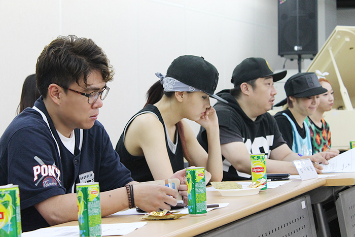 팁탑엔터테인먼트에서는 대표님, 실장님, 안무가 소속가수 파스칼 멤버2명이 함께 참석을 하였고, 본교 교수님으로는 실용음악예술학부 임일홍교수님과 이주원교수님이 참석을 하였고, 실용무용예술학부 나경식교수님과 최인영교수님이 함께 심사위원으로 참석하셨습니다.