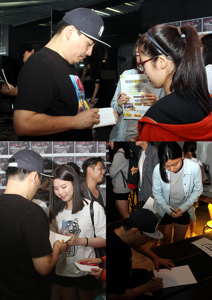 특강 후 학생들에게 싸인을 해주며 못다한 이야기를 나누는 현진영 교수