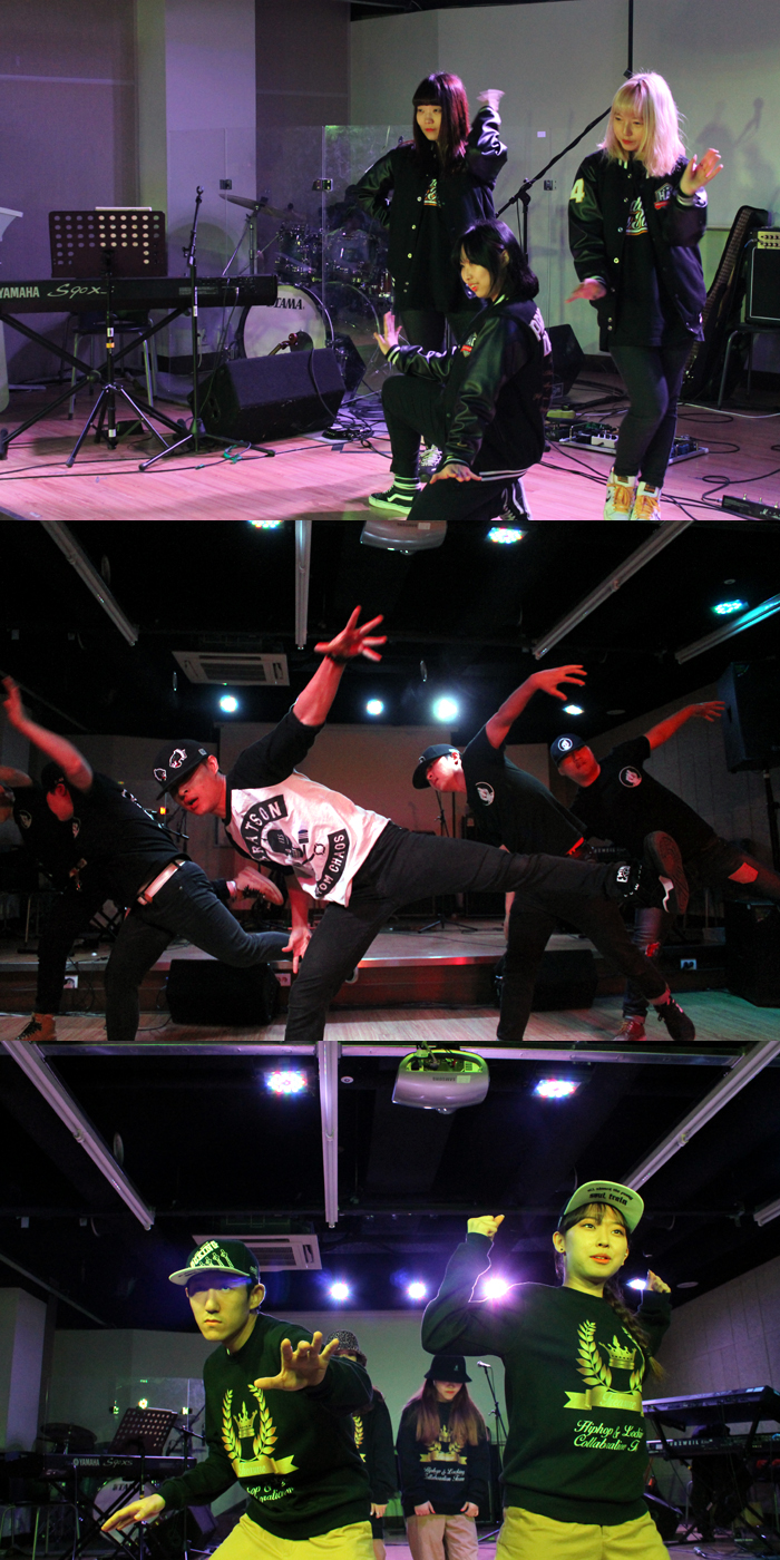 방송댄스 전공, 크럼프 전공, 락킹 전공 학생들의 공연이 이어졌습니다.