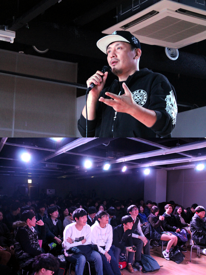 공연 중간중간에는 이동열 교수가 아현산업정보고등학교 학생들과 이야기를 나누며 화기애애한 분위기를 이끌었습니다.