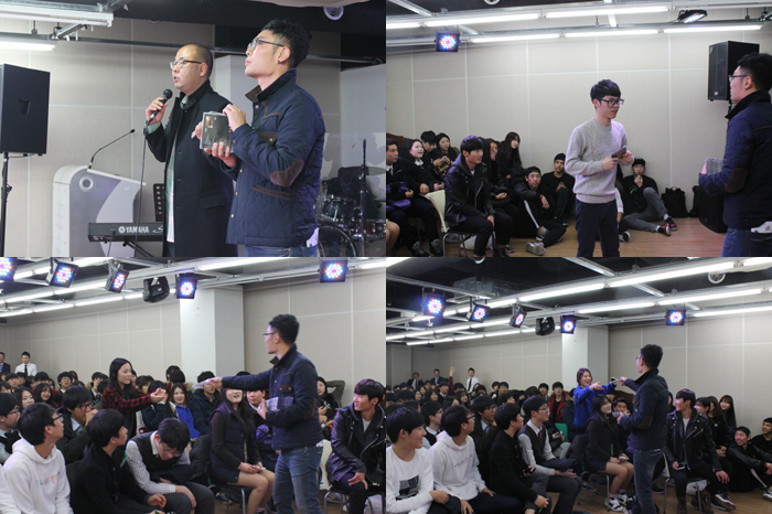 이 날, 본교의 진로체험학교에 참여한 아현산업정보학교 학생들을 위하여 임일홍 교수와 이동열 교수는 추첨을 통해 부활 히트곡이 담긴 앨범을 선물로 주었습니다.
