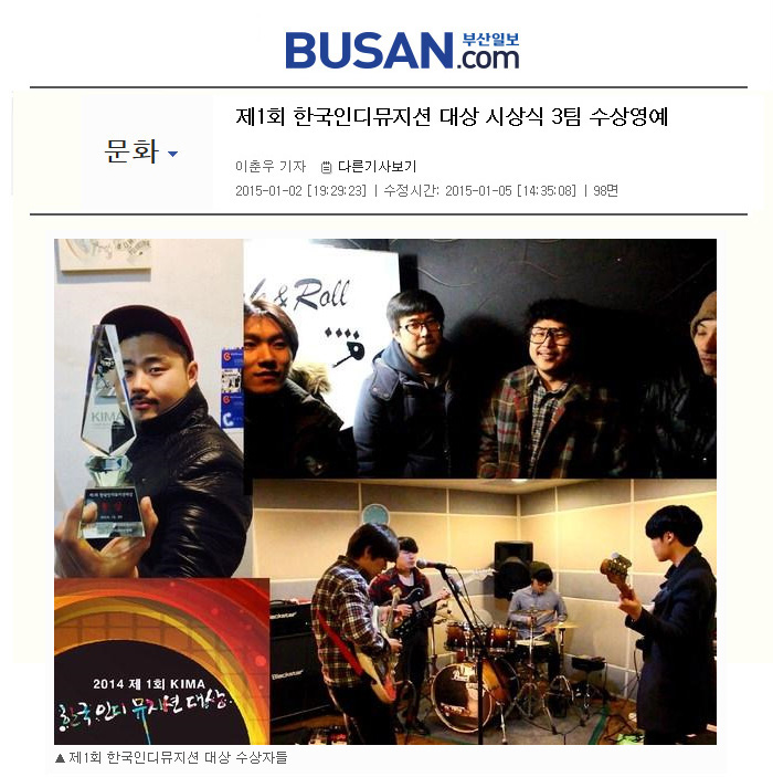 [부산일보] 제1회 한국인디뮤지션 대상 시상식 3팀 수상영예