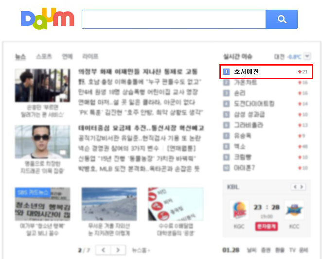 포털사이트 다음 실시간 검색어 1위!