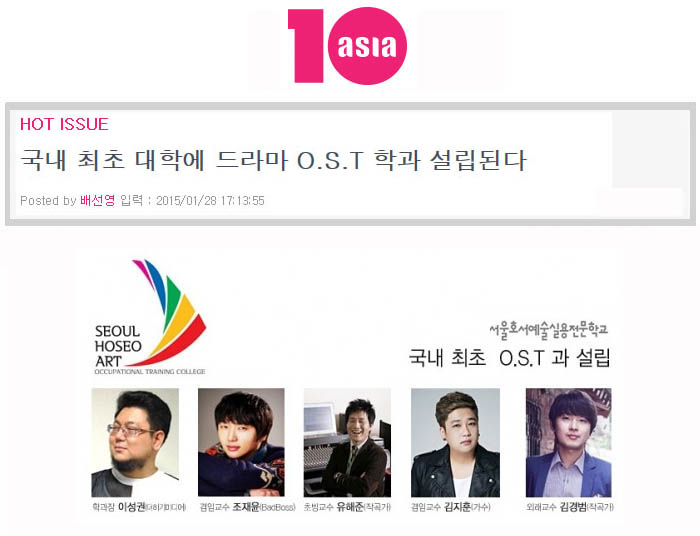 [텐아시아] 국내 최초 대학에 드라마 O.S.T 학과 설립된다