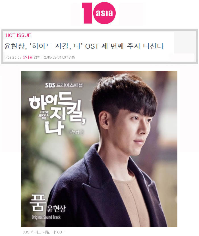 지난 10월 아이유와의 듀엣으로 함께 한 ‘언제쯤이면’과 ‘나 평생 그대 곁을 지킬게’ 두 곡을 더블타이틀로 앞세운 앨범 ‘피아노포르테’를 발표하며 데뷔 두 달 만에 2014년 최고의 싱어송라이터로 자리매김한 윤현상이 2015년 상반기 ‘하이드 지킬, 나’ OST를 통해 컴백을 알린 것.