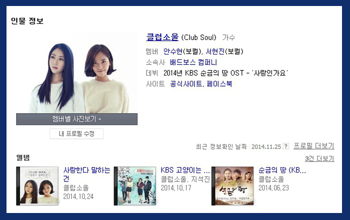 클럽소울(Club Soul)은 안수현, 서현진으로 구성된 여성 2인조로 SBS 드라마 청담동 스캔들 <우리 헤어진다면>, KBS 드라마 일편단심 민들레 <사랑이란>, MBC 드라마 소원을 말해봐 <신발에 떨어진 눈물>, KBS 드라마 순금의 땅 <사랑인가요>, KBS 드라마 고양이는 있다 <사랑한다 말하는 건> 을 지석진씨와 함께 콜라보레이션으로 발표해 이슈를 일으키는 등.. 다수의 아침,일일 드라마 OST에 참여한 경력이 있는 그룹이랍니다.